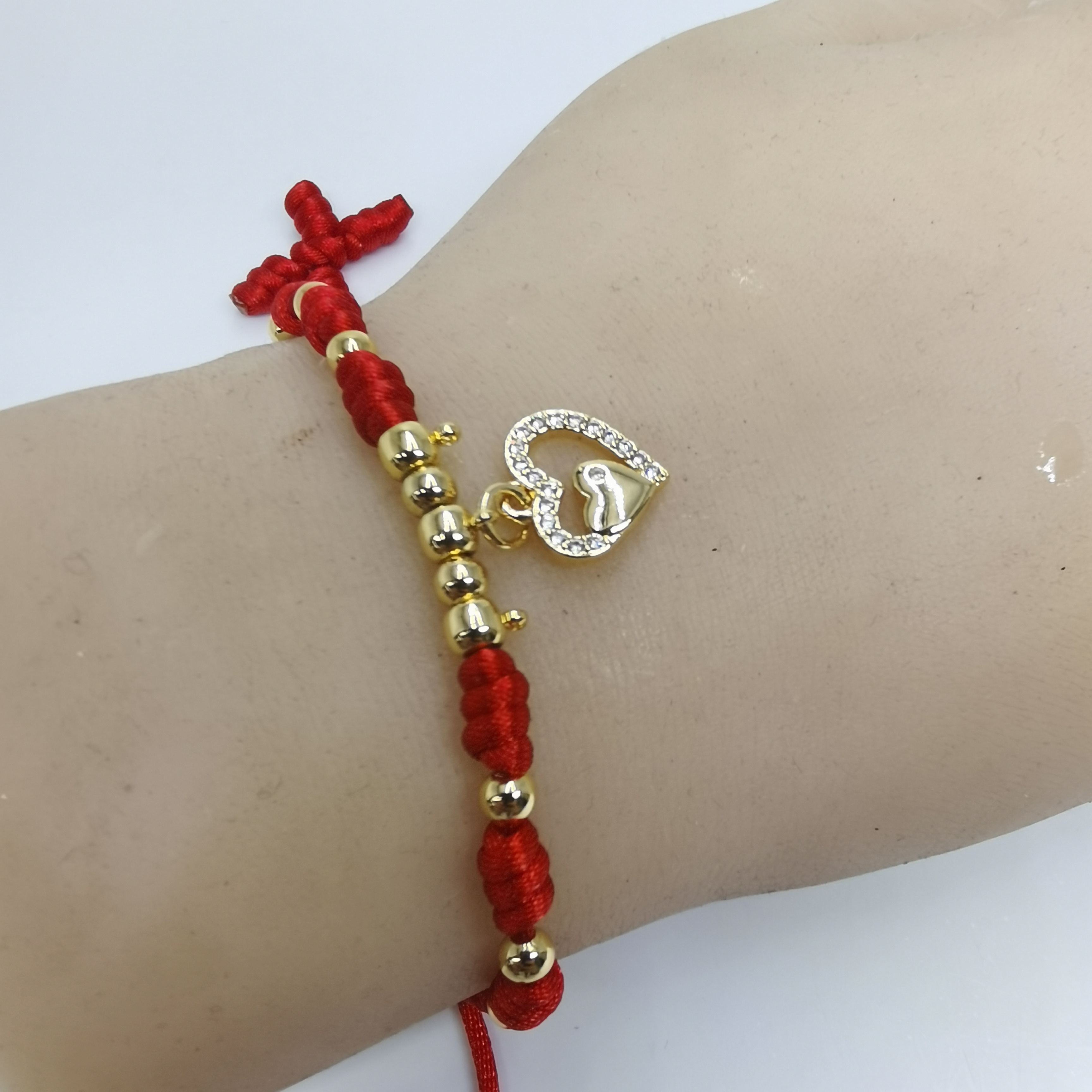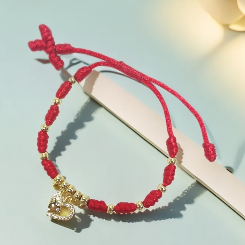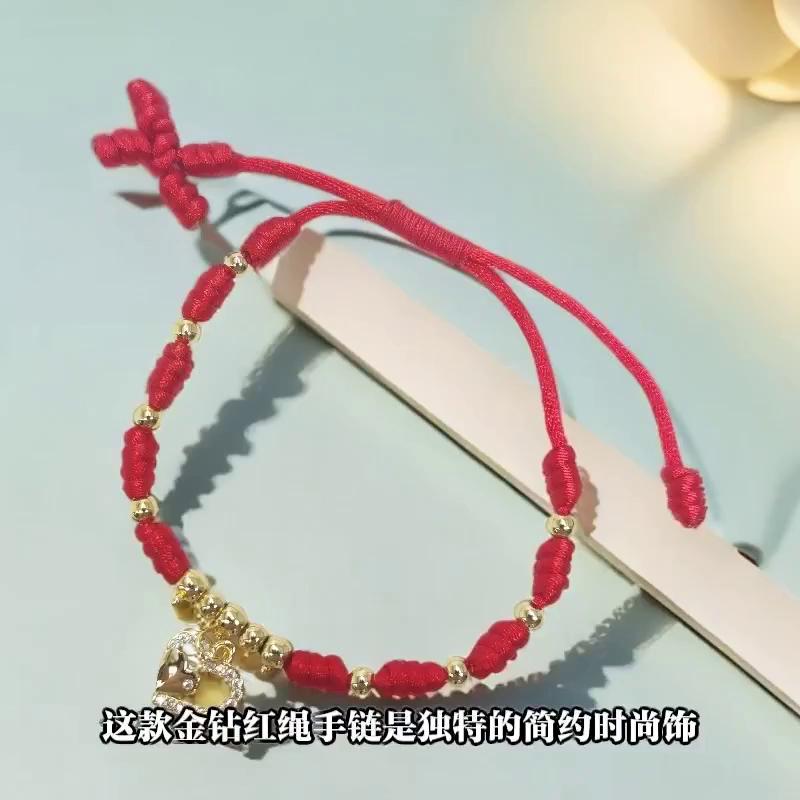 星灵感XLG跨境红绳爱心吊坠手链本命年女时尚镀金镶钻幸运手绳饰品热销