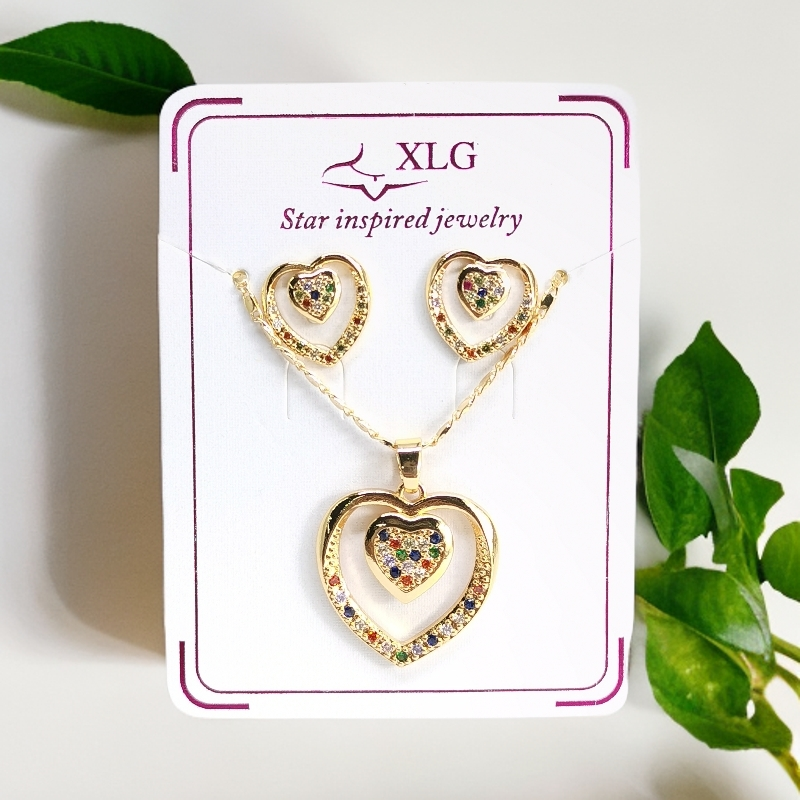 星灵感XLG饰品 欧美跨境爆款心形锆石套装厄瓜多尔热卖款爱心项链耳环套装