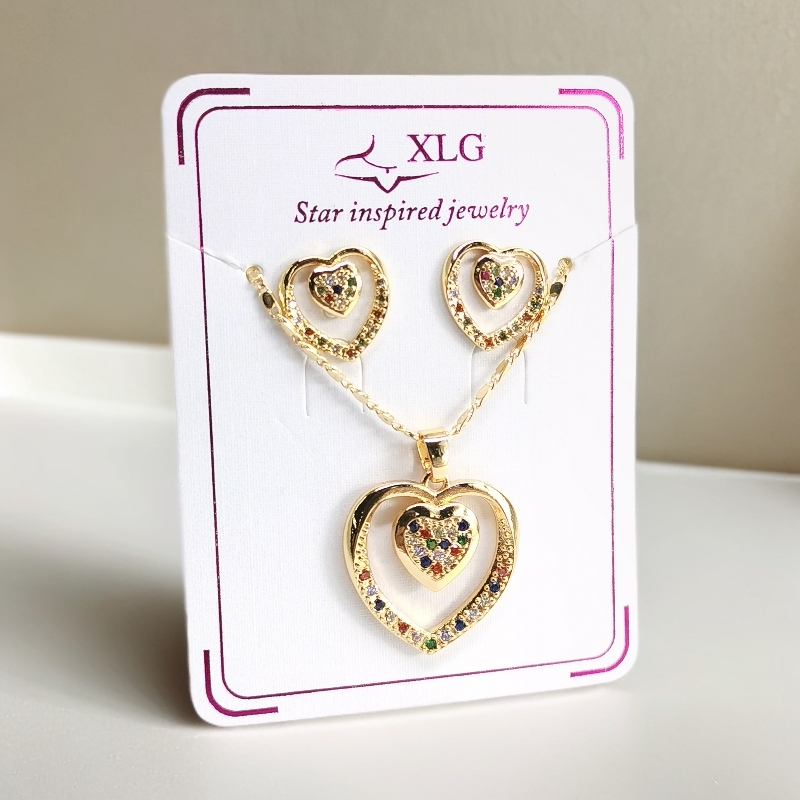 星灵感XLG饰品欧美跨境厄瓜多尔热卖款爱心项链耳环套装